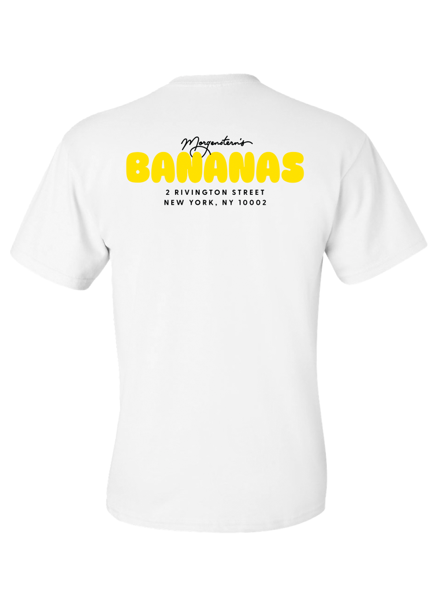 White pocket tee with Cone character on front pocket in black and logo on back in black and yellow.